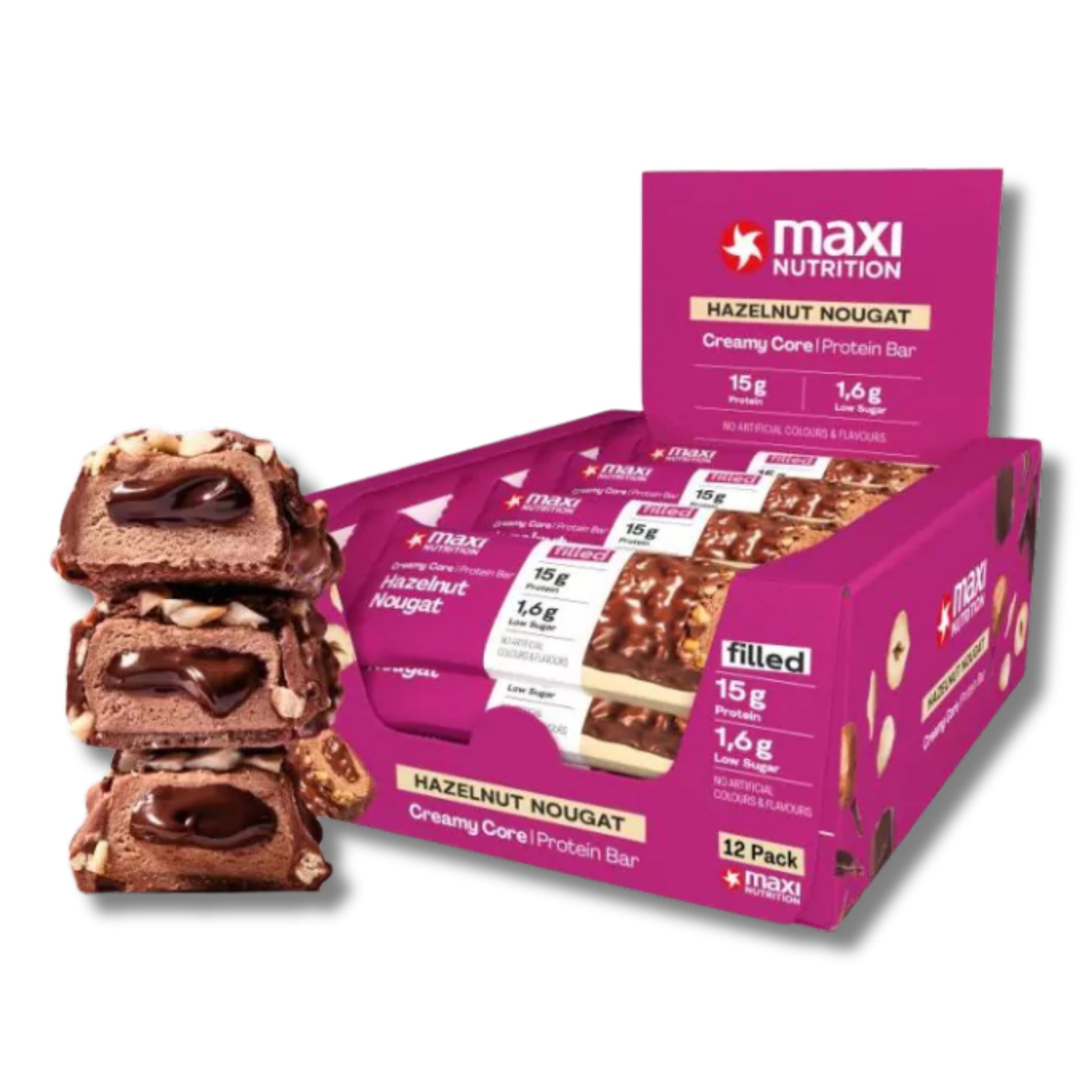 Las MaxiNutrition Protein Bars son una barrita proteica práctica y deliciosa, con 15 g de proteína para ayudarte a alcanzar tus objetivos de entrenamiento. Disponibles en seis sabores increíbles: Chocolate Cookies & Milk, Dark Chocolate Coconut, Blueberry Muffin, Hazelnut Nougat, Peanut Caramel, Strawberry Yoghurt.